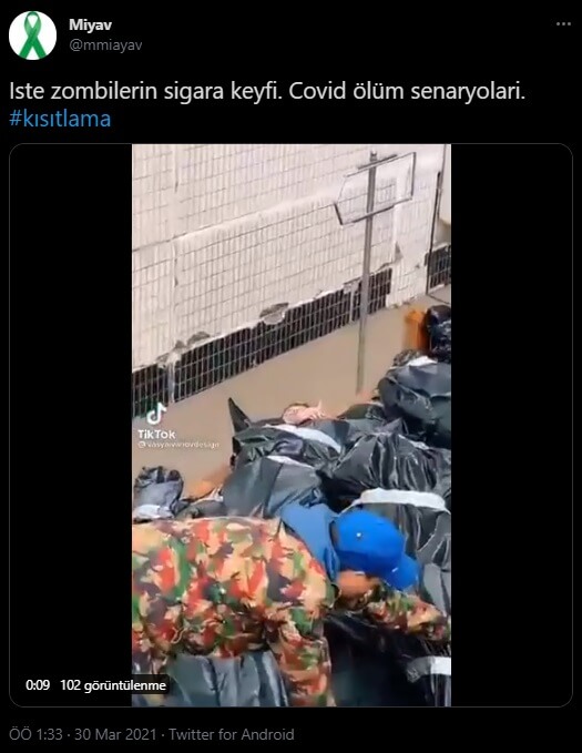 Söz konusu video, koronavirüsün tüm dünyaya yayıldığı ilk dönemlerde salgın nedeniyle yaşamını yitirenlerin naaşlarının yüklendiği sanılan araçta bir kişinin sigara içtiği iddiasıyla da paylaşılmıştı.