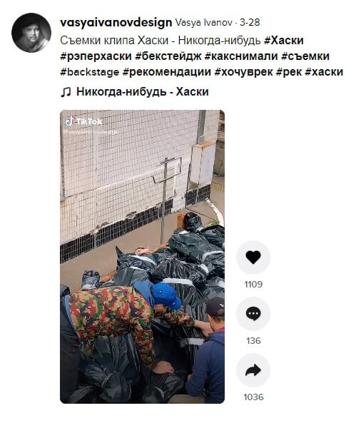 Klibin yapım tasarımcısı Vasya Ivanov söz konusu videoyu TikTok profilinde “Husky – klip çekimi” (“Husky – Ever Clip Shooting”) notu ile paylaşmıştı.