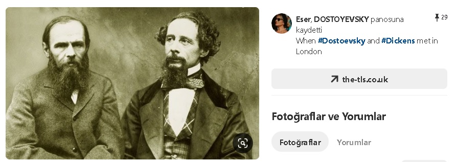 Dünya çapında ünlü edebî karakterler olan Charles Dickens ve Fyodor Dostoyevski’nin 1862 yılında Londra’da Dickens’ın çıkardığı All the Year Round dergisinin bürosunda bir araya geldiği iddiasına destek mahiyetinde aşağıdaki fotoğraf öne sürülmüş: