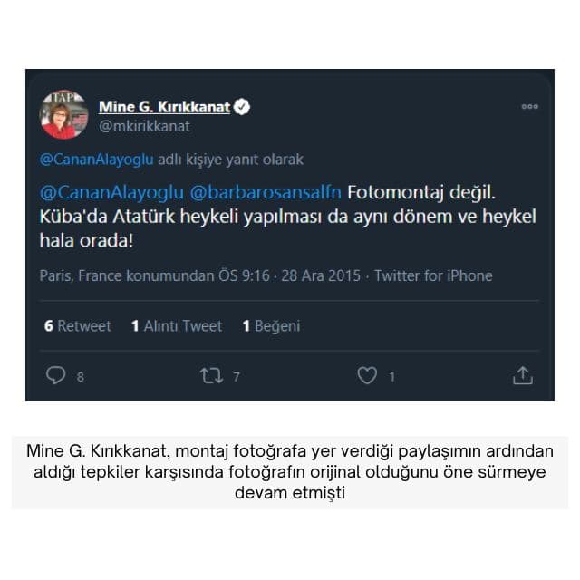 Cumhuriyet Gazetesi köşe yazarı Mine G. Kırıkkanat, Twitter hesabından 28 Aralık 2015 tarihinde yaptığı paylaşımdagüzel adamlar güzel adamlardan esinlenir” notuyla birlikte Che Guevara’yı Nutuk okurken gösteren montaj fotoğrafa yer vermişti.