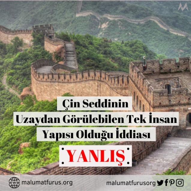 İnsan yapımı hiçbir yapıt uzaydan çıplak gözle görülememektedir. Dünyanın 7 harikasından biri olan Çin Seddi de bu özellikten müstesna değildir.