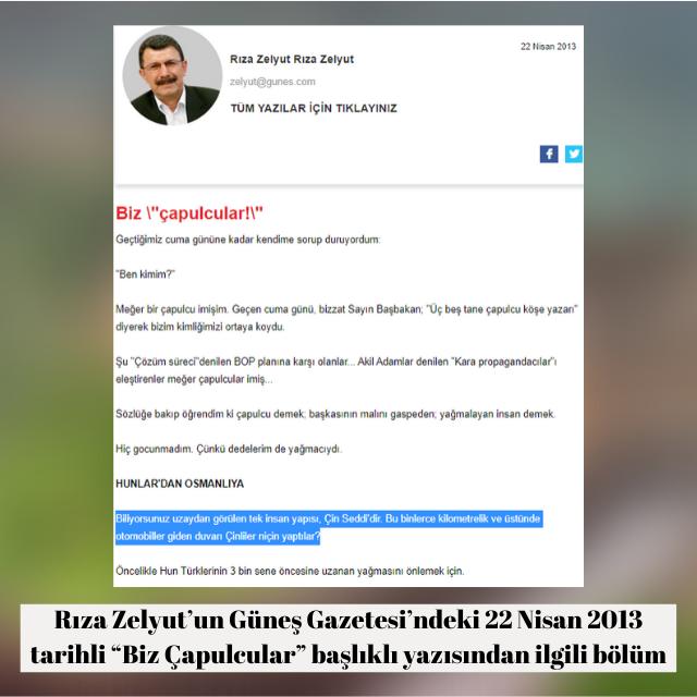 Güneş Gazetesi’nden Rıza Zelyut’un 22 Nisan 2013 tarihli “Biz Çapulcular” başlıklı yazısından: