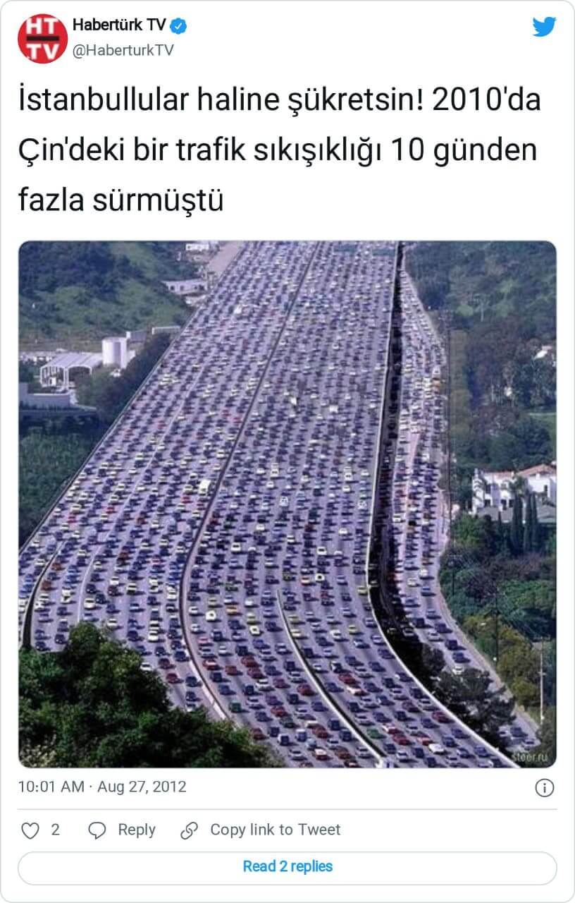Sanılanın aksine bahsi geçen görsel Çin’de 2010 yılında yaşanan yoğun trafiğe ait değil.