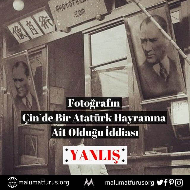 Çin Halk Cumhuriyeti’nden bir erkek kuaförünün vitrinine Atatürk resmini astığını gösteren bir fotoğrafın “Çin’de bir Atatürk hayranı” başlığıyla çeşitli internet sitelerinde ve sosyal medyada paylaşıldığı görülmektedir.