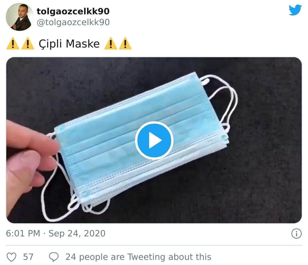 “Çipli maske” videosu farklı sosyal medya platformlarında Türkiye’den kullanıcıların da ilgisini cezbetmiş durumda. Video kaydının yüz maskelerine çip takıldığını ispatladığı iddiasını aktaran bazı paylaşımlar şöyle: