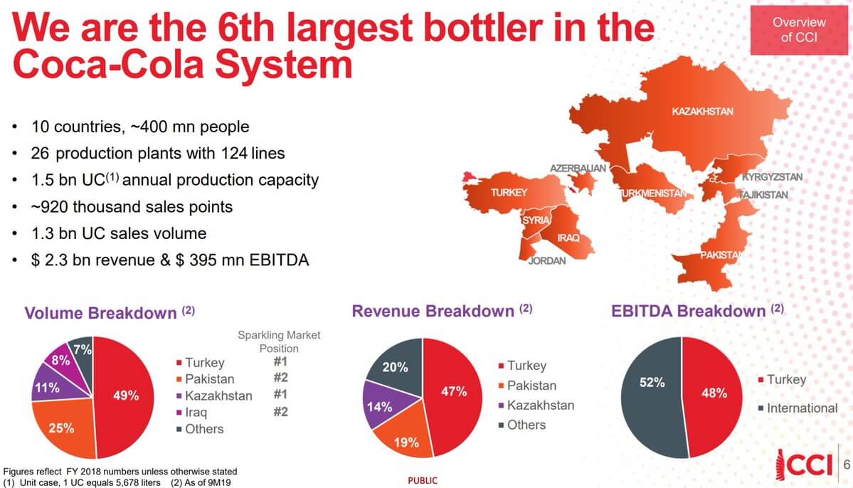 Türkiye merkezli 10 ülkelik ağa ürün dağıtan Coca-Cola İçecek (CCI), The Coca-Cola Company tarafından küresel ölçekte yürütülen “Coca Cola Sistemi”nin (6. sırada gelen) küçük bir parçasıdır.