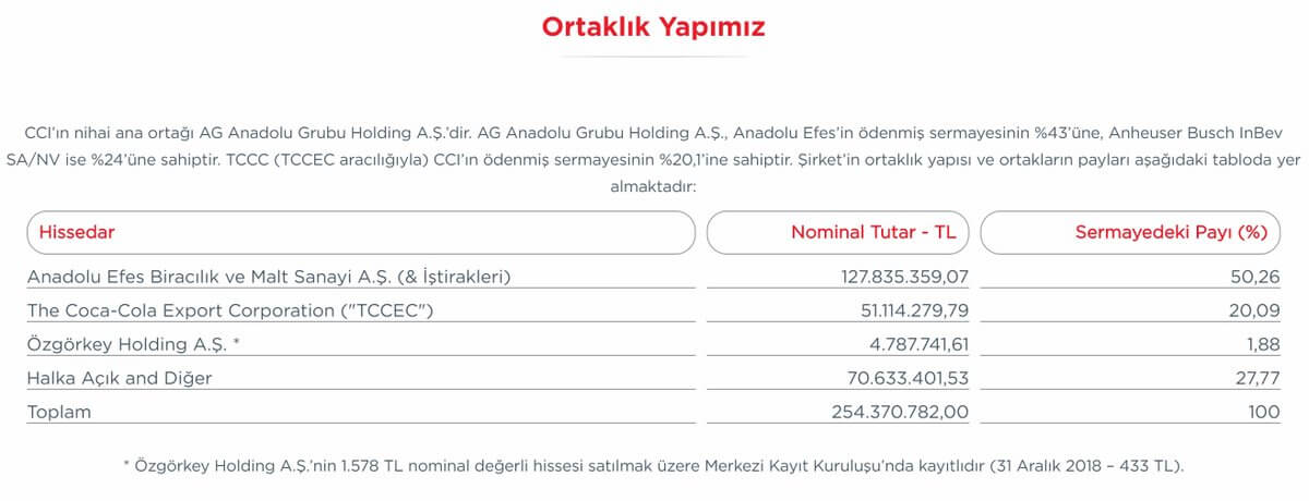 CCI’nın ortaklık yapısından da bahsetmekte fayda var.