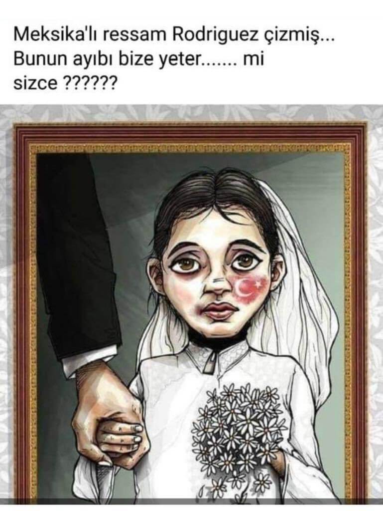 Bahsi geçen fotoğrafı, reşit olmayan kız çocuklarının kendilerinden büyük erkeklerle evlendirildiği iddiasıyla kullanan paylaşım örneği: