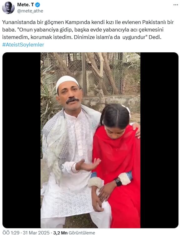 Yapay zekâ uygulaması ile hazırlanan “çocuk gelin” temalı “İslam buysa ‘ben yokum'” yorumuyla paylaşılmış.