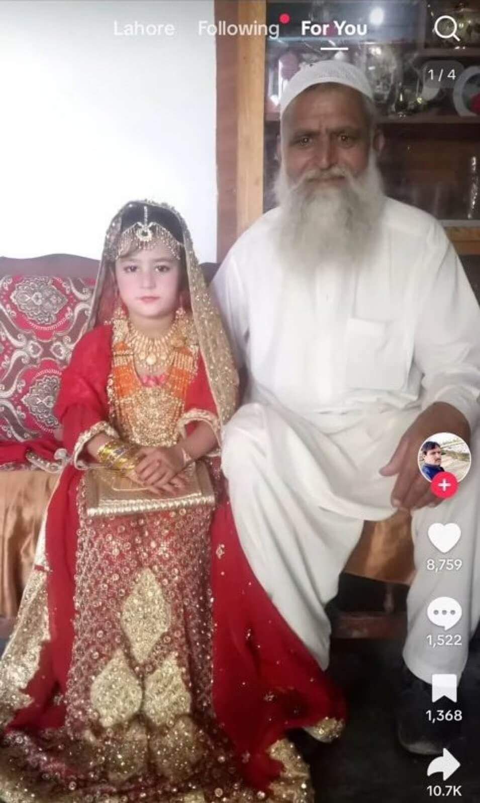 Sosyal medya platformlarında sarı şalı ve mavi elbisesiyle karnı hafif şişkin bir kız çocuğunun yanında yaşlı bir erkekle görüntülendiği video, Pakistan’da 10 yaşındaki bir çocuğun kendisinden 40-50 yaş büyük bir erkekle evlendirildiği ve hamile kaldığı iddiasıyla paylaşıldı.