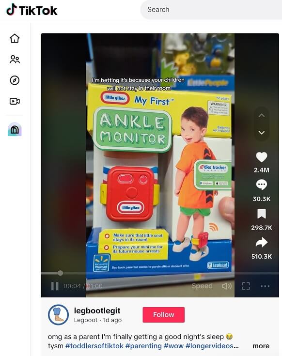 Ev hapsi cezasının infazı için kullanılan elektronik kelepçeye benzer şekilde, çocukların evde izlenmesini ve terbiye edilmesini (!) amaçlayan “ankle monitor” (“ayak bileği monitörü”) adı verilen bir cihazın ABD’de Walmart mağazalarında satışa sunulduğu iddiasıyla bir videonun sosyal medya platformlarında paylaşıldığı görülüyor.