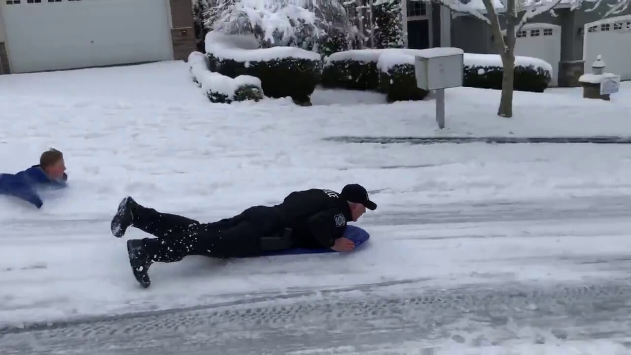 Washington eyalet polisinin çocuklarla birlikte karda kayak eğlencesinden görüntüler ABD basınına da yansımıştı.