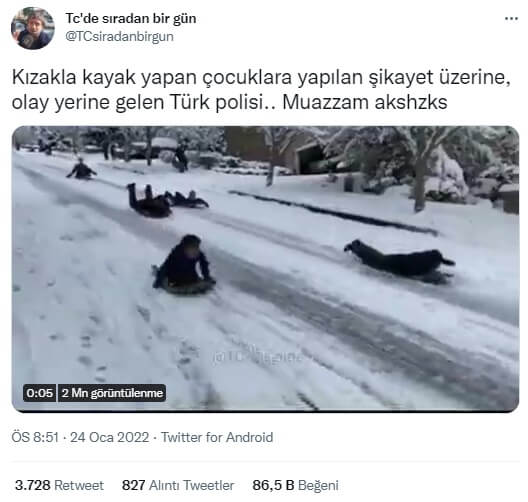 “Kızakla kayak yapan çocuklara yapılan şikayet üzerine, olay yerine gelen Türk polisi.. Muazzam akshzks”