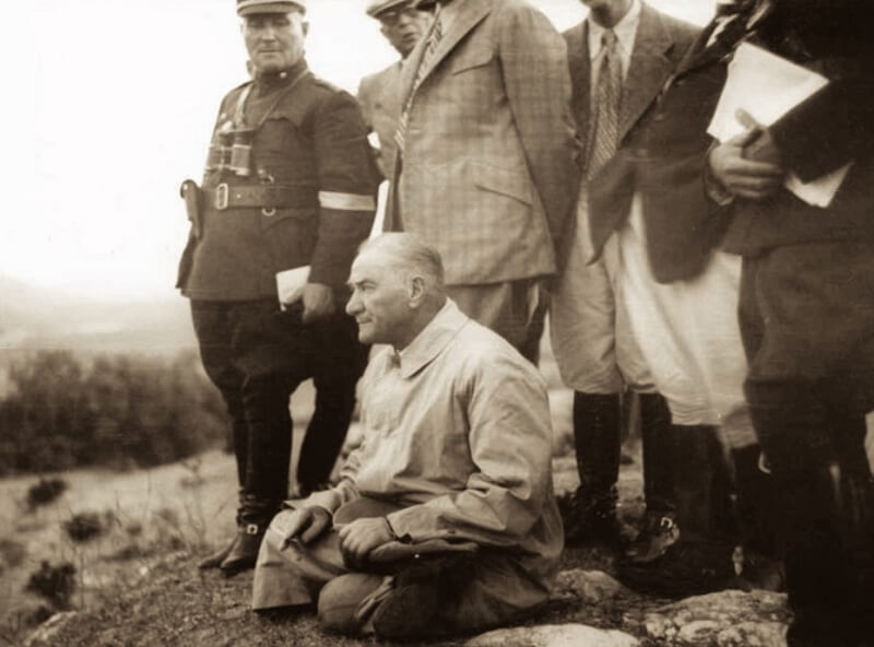 Atatürk’ün paylaşılan fotoğrafı 10 Ekim 1937 tarihinde Aydın Söke’de Kızılöz Tepesinde askerî manevraları izlerken kaydedilmiş (Genelkurmay Başkanlığı (2015). Fotoğraflarla Atatürk 1936-1938. Askeri Tarih ve Stratejik Etüt (ATASE) Daire Başkanlığı Yayınları. Sf: 410-412).
