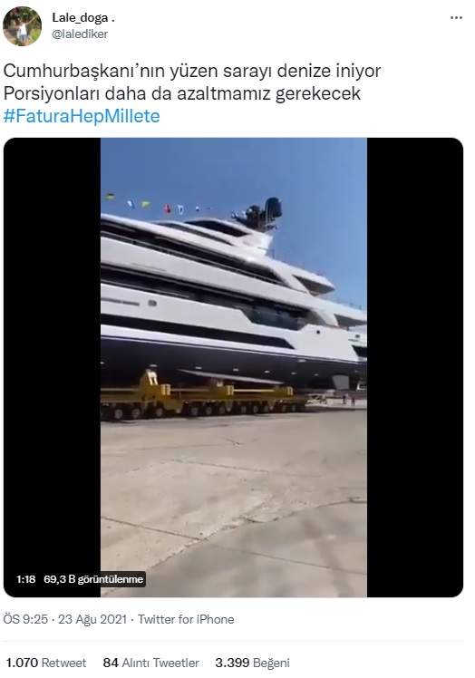 “Cumhurbaşkanı’nın yüzen sarayı denize iniyor Porsiyonları daha da azaltmamız gerekecek #FaturaHepMillete”