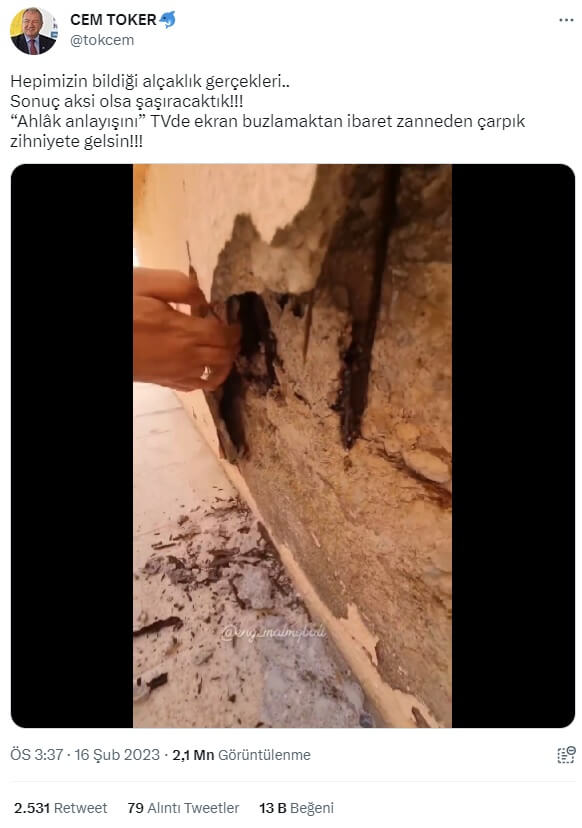 “Bu görüntü Türkiye’den mi değil mi bilmem… Önemi de yok… Bölgedeki enkazda bunun aynısı yüzlerce, binlerce örnek çıkacak, çıkıyor da… O yüzden “kanıtın var mı” diye gelmeyin dangalAk güruhu!!!”