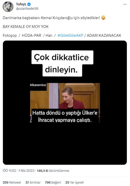 TufeyL (@ozanbedel10): “Danimarka başbakanı Kemal Kılıçdaroğlu için söyledikleri 🤪 BAY KEMALE OY MOY YOK Fotoşop / HÜDA-PAR / Halı / #GüleGüleAKP / ADAM KAZANACAK”
