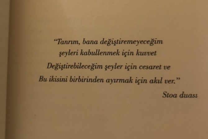 ‘Tanrım, bana değiştiremeyeceğim şeyleri kabul etme gücü, değiştirebileceğim şeyleri değiştirme cesareti ve bu ikisi arasındaki farkı anlayabilme sağduyusu ver.'”