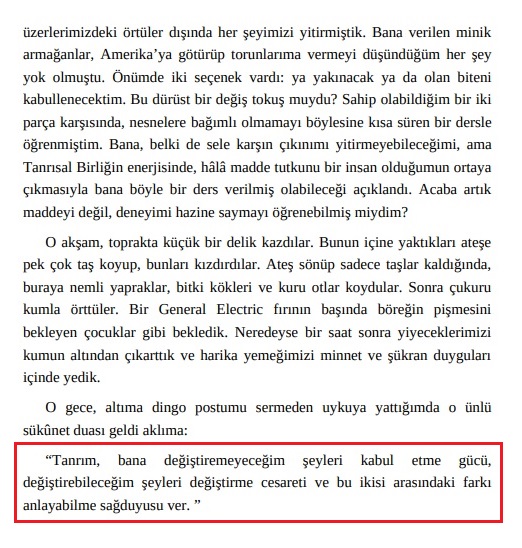 “O gece altıma dingo postumu sermeden uykuya yattığımda o ünlü sükûnet duası geldi aklıma.