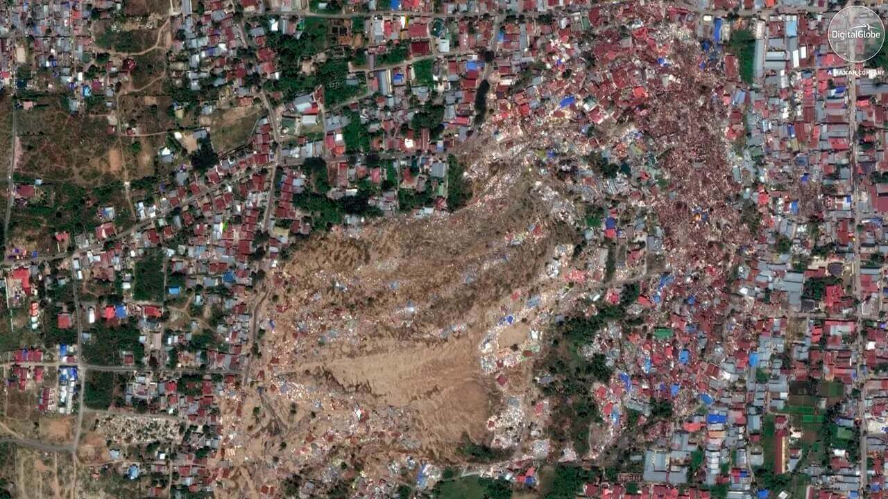 Maxar’a ait internet sitesinde 19 Aralık 2018 günü yayımlanan, depremin toprağın sıvılaşmasına neden olan bir tsunamiyi nasıl tetiklediği hakkında hazırlanan makalede bahse konu bölgenin deprem öncesi ve sonrasına ait hâlleri karşılaştırmalı şekilde sunulmuş. 2 Ekim 2018 günü yayımlanan içerikte de aynı uydu görüntüsü kullanılmış.