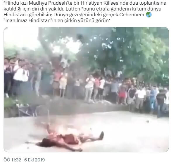 Görüntü geçmişte Hindistan’da bir kadının halkın gözü önünde diri diri yakıldığı ana ait olduğu iddiasıyla da paylaşılmış.