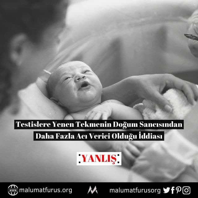 Kadının doğum sırasında çektiği acı ile erkeklerin testislerine yediği tekmenin acıyı mukayese eden iddia gerçeği yansıtmıyor.
