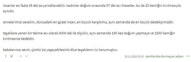 “insanlar en fazla 45 del acıya katlanabilir. kadınlar doğum sırasında 57 del acı hisseder. bu da 20 kemiğin kırılmasıyla aynıdır.