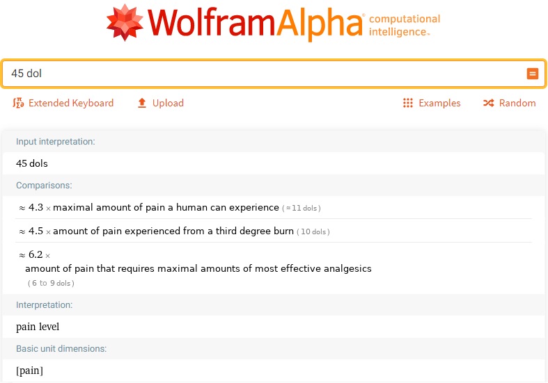 Bir insanın dayanabileceği azami acı ölçüsünün 11 dol olduğu belirtilmektedir. 45 dol, bir insanın tahammül edebileceği azami acı miktarının 4,3 katıdır.