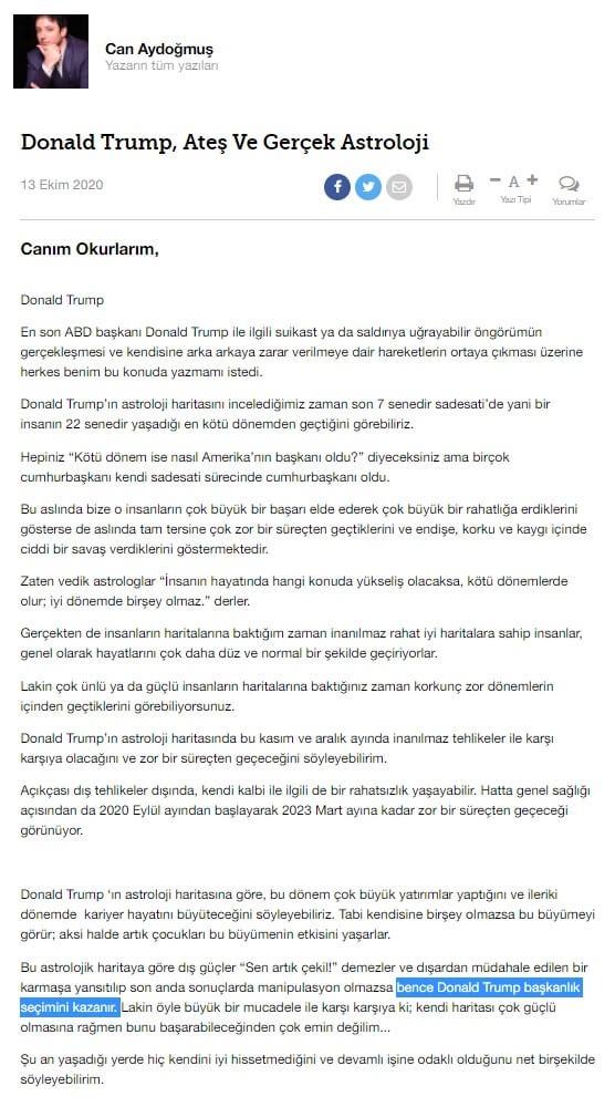 Trump’ın kazanacağını iddia eden astrologlara denk gelmesek zaten şaşılır…