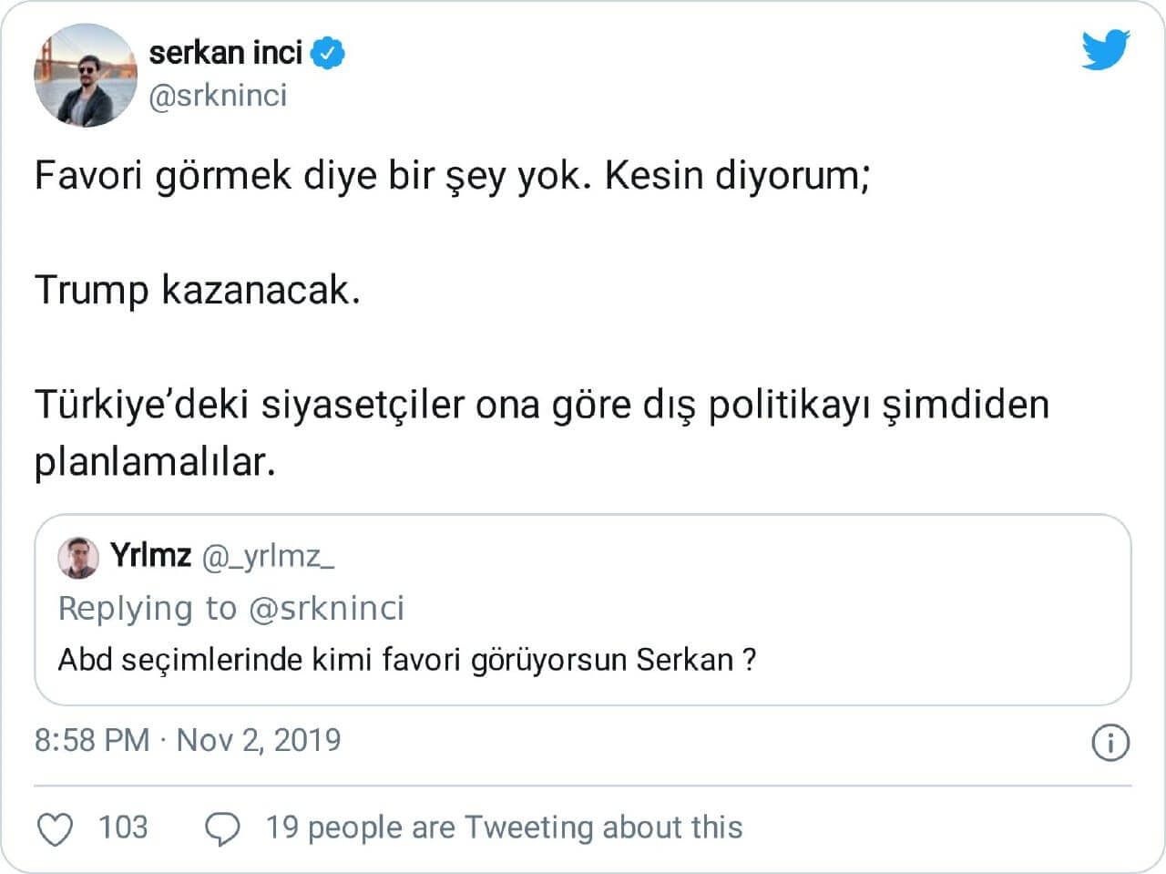 Serkan İnci: “Favori görmek diye bir şey yok. Kesin diyorum; Trump kazanacak. Türkiye’deki siyasetçiler ona göre dış politikayı şimdiden planlamalılar.”