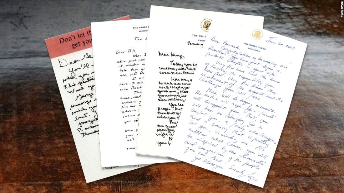 ABD Başkanlarının ofisten ayrılırken haleflerine yazdıkları mektupları el yazıları ile kaleme almaları bir gelenek hâlini almış durumda. 1980li yıllardan bu yana oluşan teamül kapsamında görevden ayrılan Başkanların haleflerine bıraktıkları el yazılı notlarda başarı dileği ve destek mesajı sunmanın yanı sıra devralacakları görevin önemini, beraberinde getirdiği zorlukları ve ödülleri vurguladıkları biliniyor.