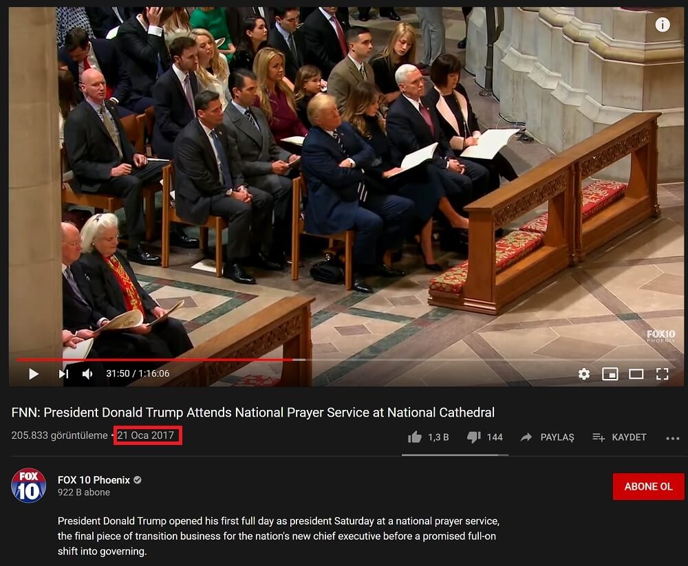 Bahse konu video kaydı Donald Trump’ın ABD’nin 45. Başkanı olarak yemin ettikten sonra 21 Ocak 2017 tarihinde katıldığı Washington Ulusal Katedrali’nde düzenlenen dinler arası dua etkinliğinden.