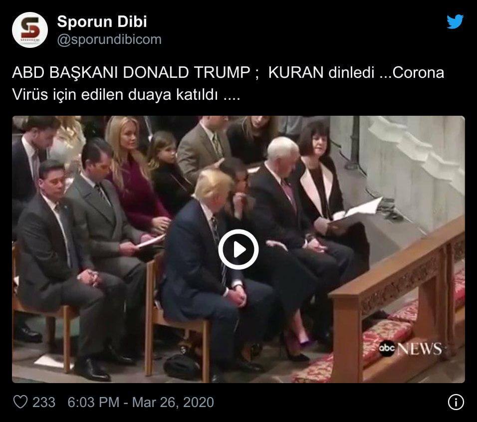 Koronavirüs salgını karşısında yaşanan çaresizliğin etkisiyle Kuran okutulmaya başlandığı ve ABD Başkanı Donald Trump’ın da koronavirüs salgını için okunan Kuran’ı dinlediği iddiası bunlardan biri.