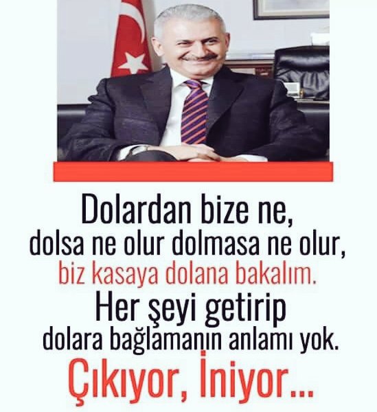 2016 yılı Ekim ayında dönemin Başbakanı Binali Yıldırım Dolmabahçe’de Çalışma Ofisinde ekonomi gazetecileriyle yaptığı toplantıda “Dolardan bize ne, dolsa ne olur dolmasa ne olur, biz kasaya dolana bakalım. Her şeyi getirip dolara bağlamanın anlamı yok. Çıkıyor, iniyor.” ifadelerini kullanmıştı.