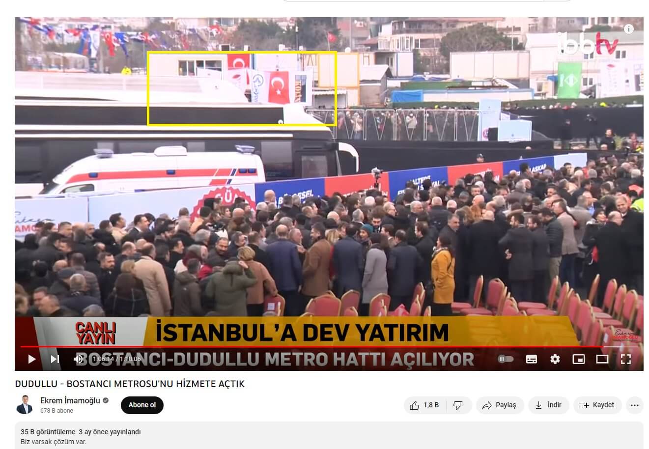 Açılıştan kayıtlar izlendiğinde, tören alanında yüklenici firmalar Kalyoncu ve Kolin İnşaat’ın flamalarının yer aldığı konumun farklı olduğu, paylaşılan görsele dijital müdahale ile eklendiği anlaşılıyor.