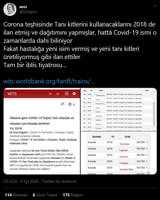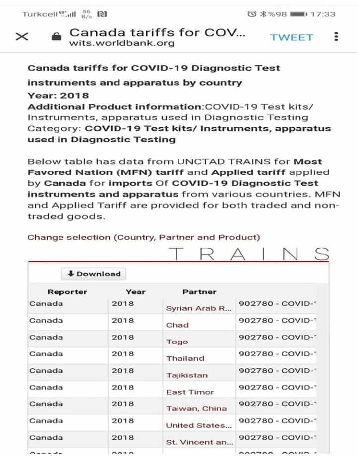 Bahse konu veri derleyicisi platformda Covid-19 için kullanılan bir medikal ekipman için 902780 ürün kodlu “Medical Diagnostic Test instruments and apparatus” tanımlı ürün için 2018 yılında uygulanan dış ticaret politikalarının aktarılmasını, bazı septikler koronavirüs salgınının önceden bilindiği iddiasına dair bir kanıt olarak algılamışlar.