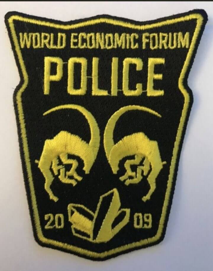 İsviçre polisinin kullanımı için WEF’in yıllık konferansına yönelik tasarlanan ve kullanılan farklı yamalar şu şekilde arşivlenmiş: