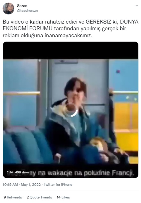 “Bu video o kadar rahatsız edici ve GEREKSİZ ki, DÜNYA EKONOMİ FORUMU tarafından yapılmış gerçek bir reklam olduğuna inanamayacaksınız.”