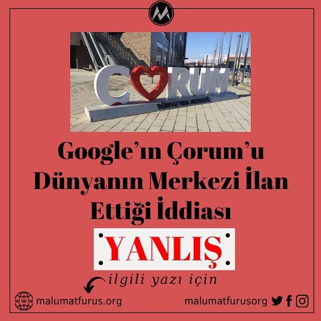 Google’ın Çorum’u Dünyanın Merkezi İlân Ettiğine Dair İddia Doğruyu Yansıtmıyor