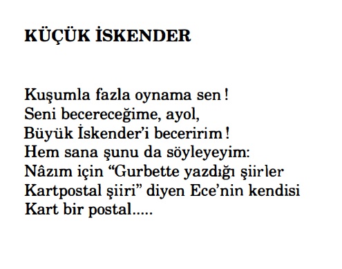 Nâzım Hikmet’in dizeleri için “kartpostal şiir” tanımını Ece Ayhan hangi bağlamda kullandığını şöyle aktarmıştı (Ece Ayhan (1992). Sivil Denemeler Kara. Yapı Kredi Yayınları. 3. Baskı. 2008. Sf: 65):
