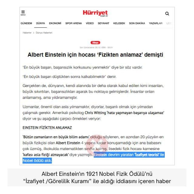 Einstein’ın İzafiyet Teorisi İle Nobel’i Aldığını Sanan Yazarlar