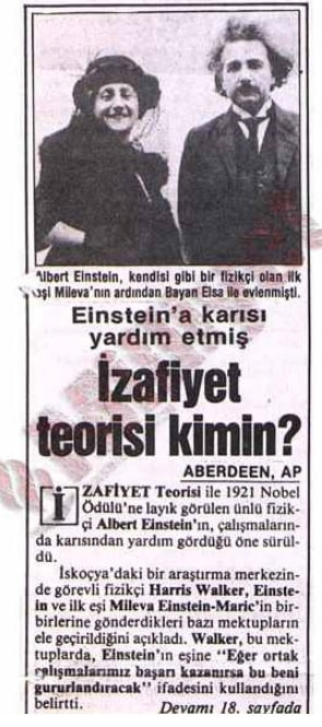 "(..) özetle "Evrende ışığın hızından başka sabit yoktur" diyen Einstein'ın "İzafiyet (Relativity / Görelilik) Teorisi", kendisine 1921'de Nobel Ödülü getirdi."