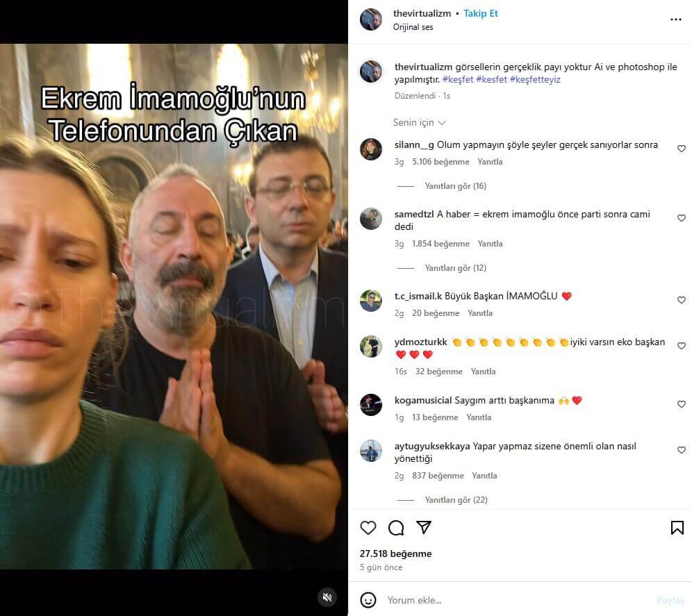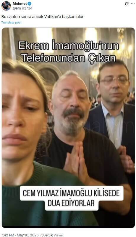 İstanbul Büyükşehir Belediyesine yönelik yolsuzluk soruşturmasında tutuklanarak görevden uzaklaştırılan Ekrem İmamoğlu’nun, Cem Yılmaz ve Serenay Sarıkaya’yla kilisede dua ederken görüntülendiği iddiasıyla bir görsel sosyal medyada gerçek gibi servis edildi.