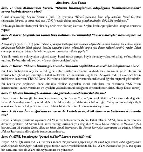 İLAVE: Doç. Dr. Tolga Şirin Ekrem İmamoğlu hakkında verilen cezanın kesinleşmesi ile ilgili olasılıklar hakkında şu açıklamaları sunmuş:
