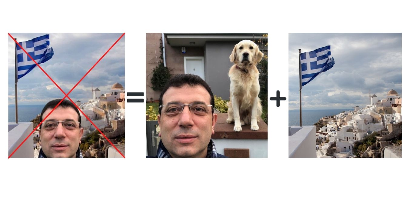 Daha önce de, Ekrem İmamoğlu’nun Yunan bayrağı önünde fotoğraf çekildiği iddiasıyla, Santorini’den bir fotoğraf ile sosyal medya hesabında paylaştığı özçekim fotoğrafı birleştirilerek paylaşılmıştı.