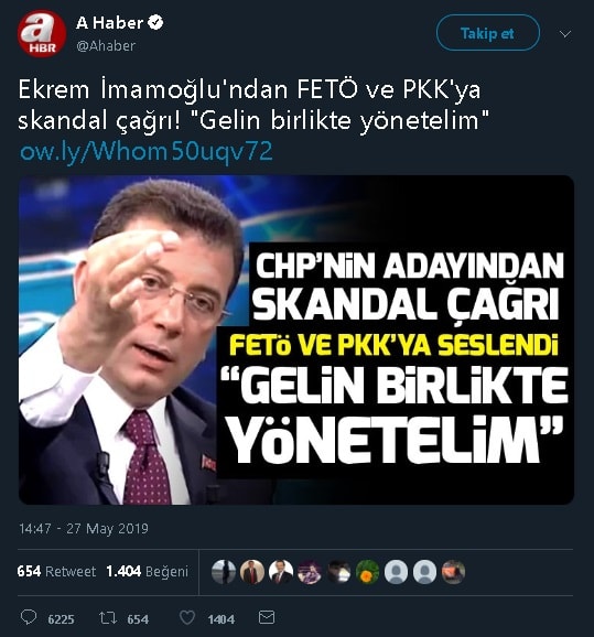 Millet İttifakı İstanbul Büyükşehir Belediye Başkan Adayı Ekrem İmamoğlu’nun 27 Mayıs 2019 Pazartesi akşamı Habertürk televizyon kanalında katıldığı programda dile getirdiği hususlar sonrasında dezenformasyonun, montajın ve bağlamdan koparma operasyonlarının örneklerine şahit olduk.
