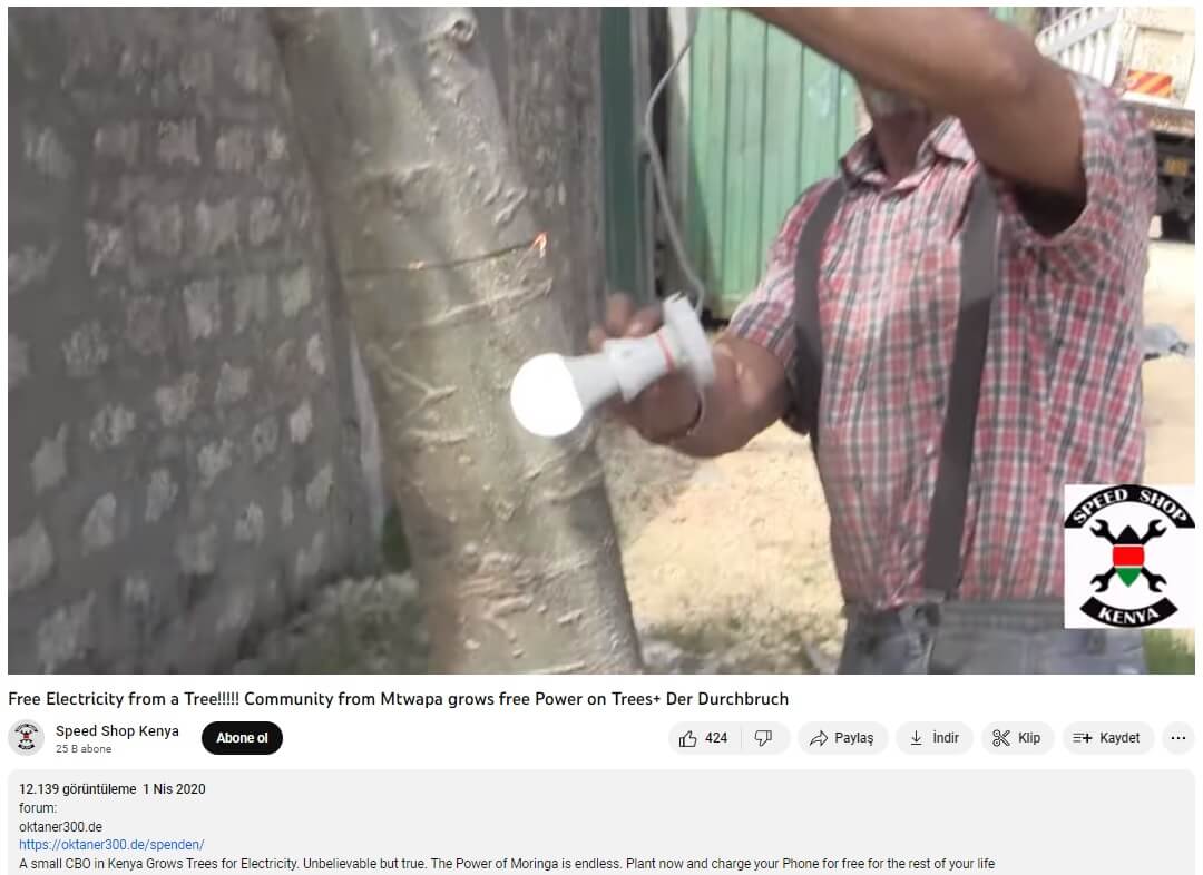 Videoda elektrik akımı ürettiği ve güç bankası olarak kullanılabileceği ileri sürülen Moringa ağacının elektriği yakınındaki elektrik hatlarından aldığı da ileri sürülmüş.