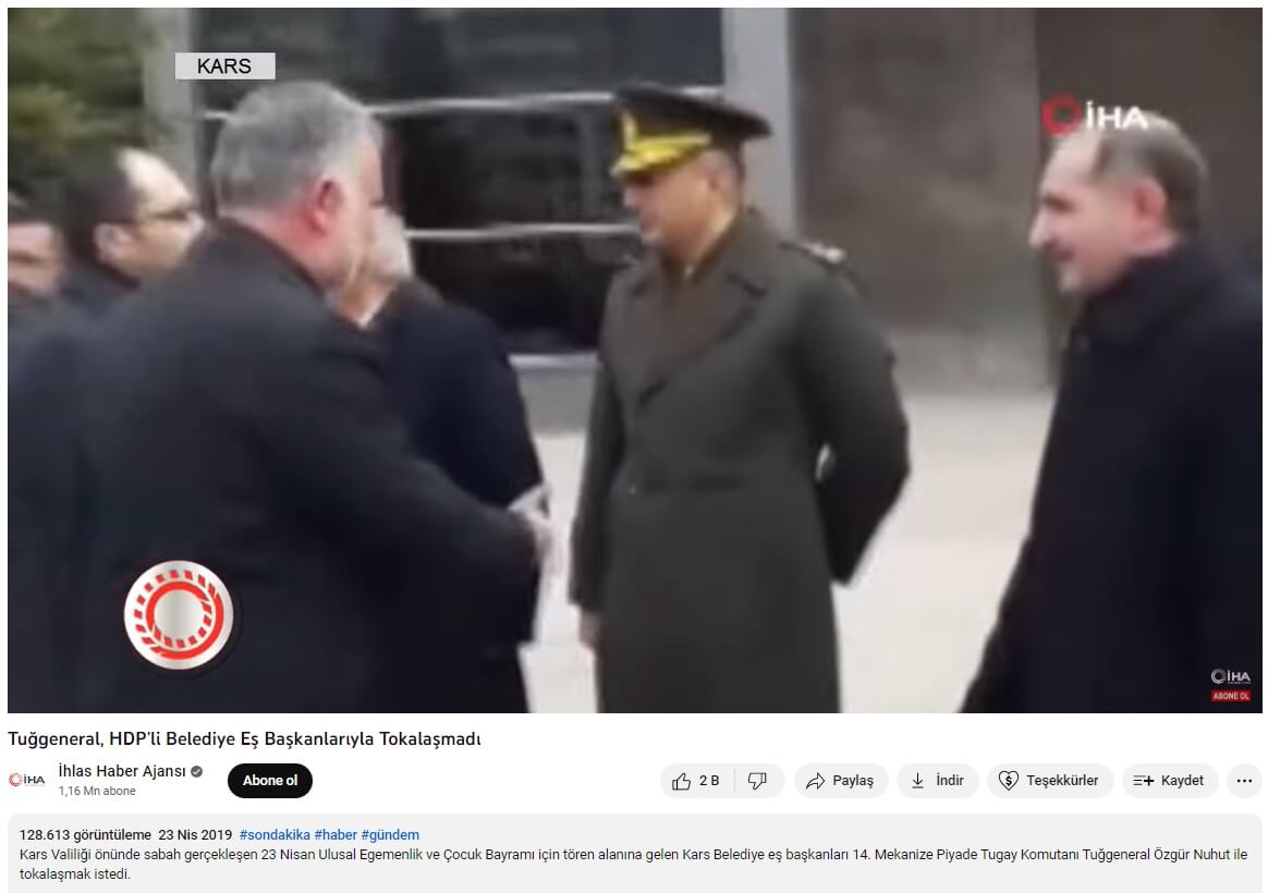Kars Valiliği önünde 23 Nisan 2019 günü sabahı düzenlenen törende Tuğgeneral Özgür Nuhut, HDP’li Kars Belediye eş başkanlarının elini sıkmamıştı.