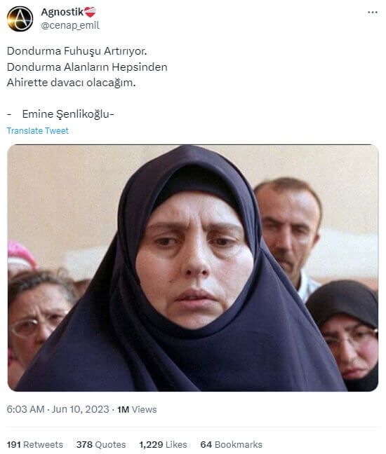 Emine Şenlikoğlu’nun “Dondurma fuhşu artırıyor. Dondurma alanların hepsinden ahirette davacı olacağım.” ifadelerini kullandığı iddiası uzun süredir sosyal medya platformlarında paylaşılıyor.