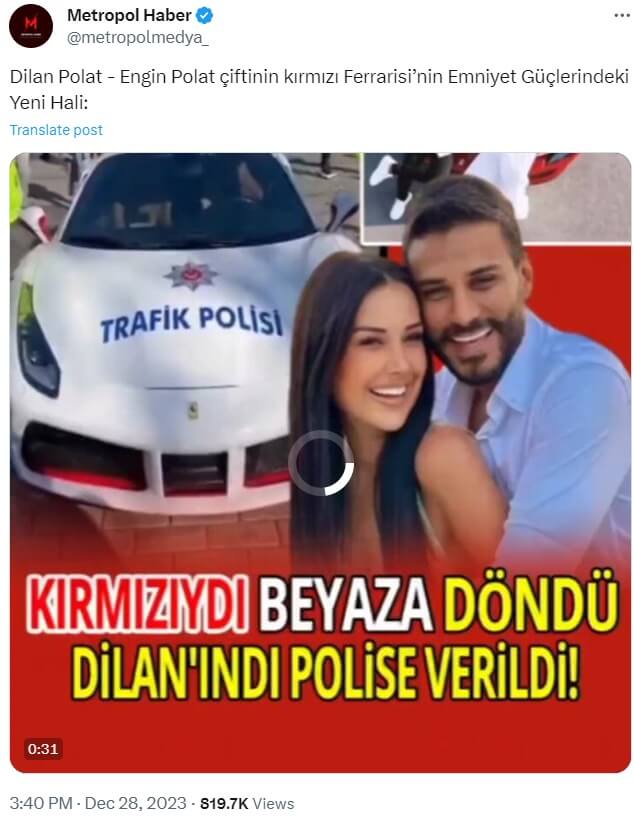 Metropol Haber (@metropolmedya_): “Dilan Polat – Engin Polat çiftinin kırmızı Ferrarisi’nin Emniyet Güçlerindeki Yeni Hali:”